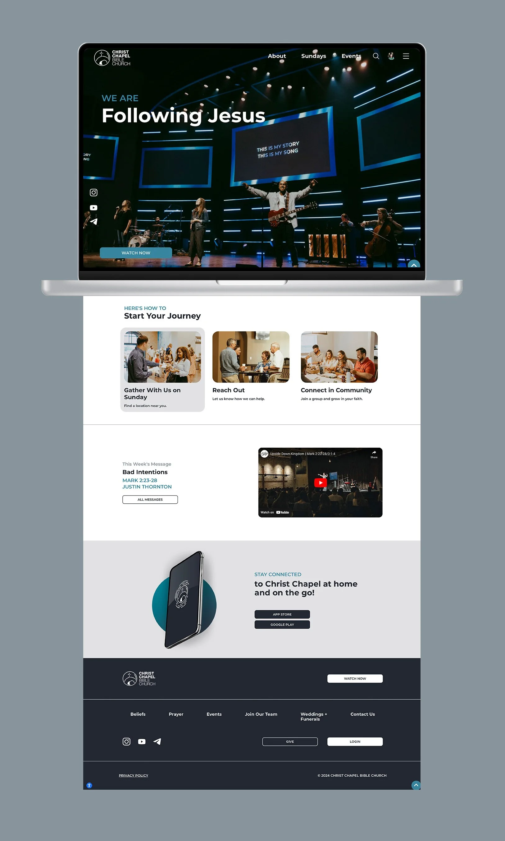 Christ Chapel Bible Church’s new website exhibits a modern, refreshed design with an intentional organization to enhance the user experience. View the full website at ccbcfamily.org. This website was developed alongside Schaefer Advertising Co.